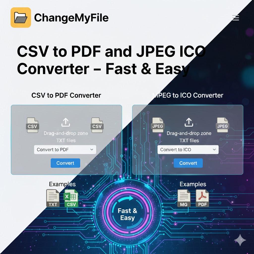 This is where CSV to PDF and JPEG to ICO Converter – Fast & Easy tools come into play. These tools allow you to convert files seamlessly without technical knowledge, software installation, or complicated steps. With online converters like ChangeMyFile, file conversion becomes simple, fast, and accessible to everyone.